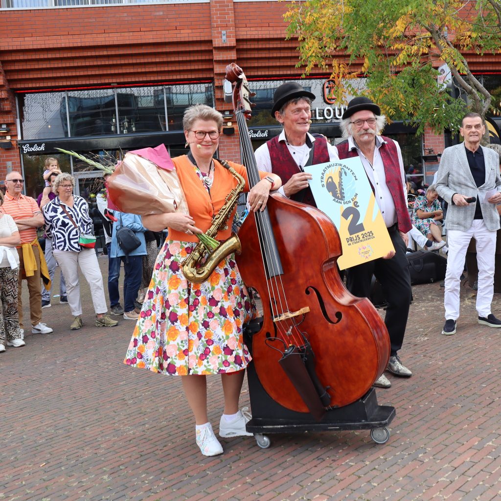 Allen kregen een mooie bos bloemen van de Bloembar.nl en een geldprijs. Eddie kreeg de Straatmuzikanten Aan Den Rijn Sax Bokaal en zijn naam komt op de Wisselbokaal NK Straatmuzikanten.